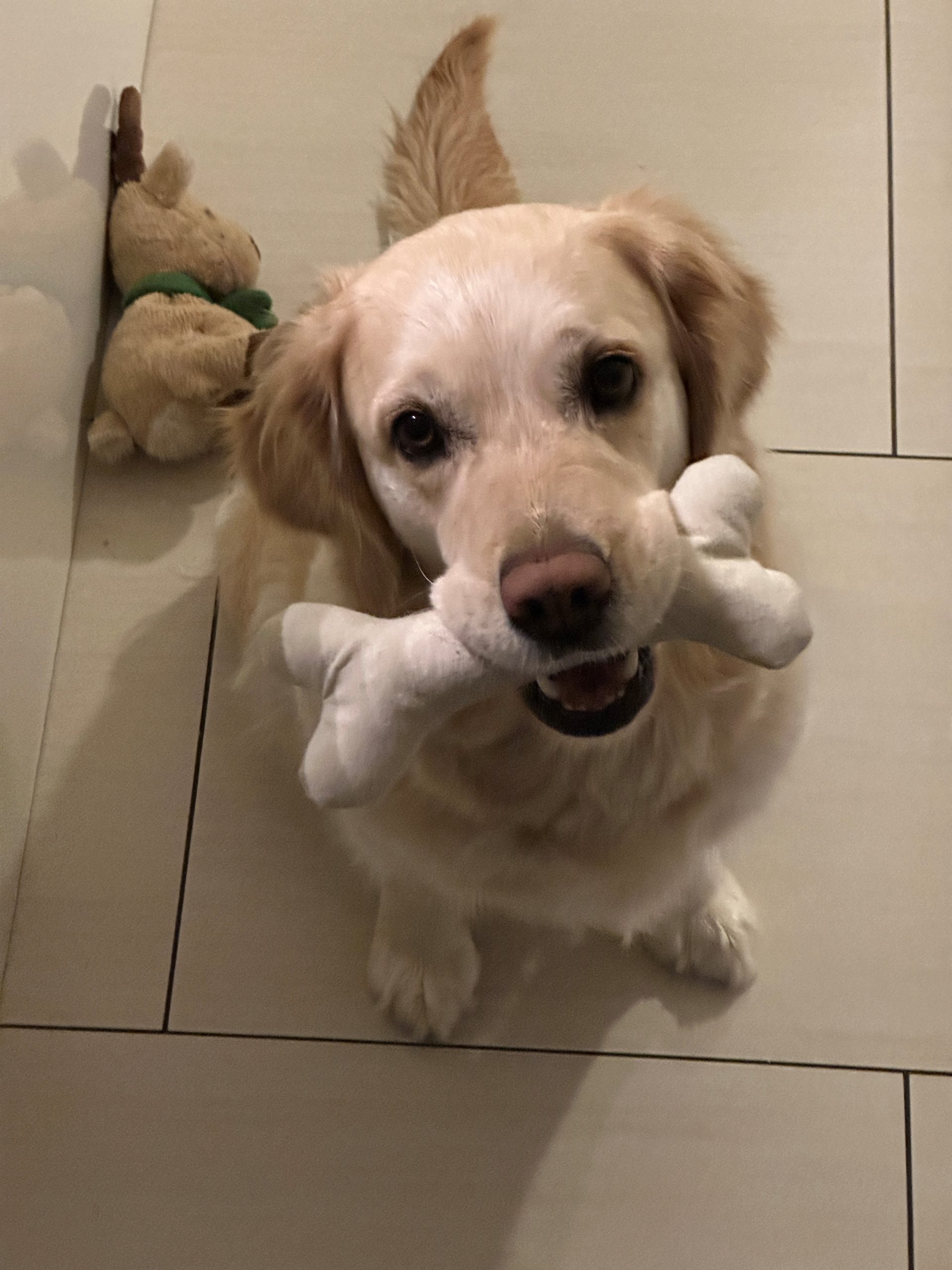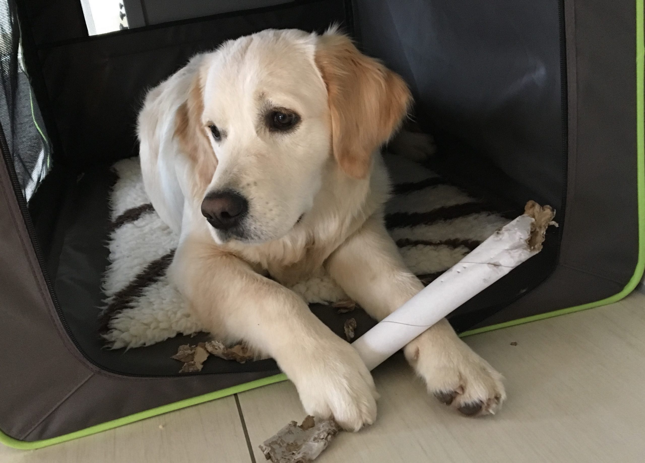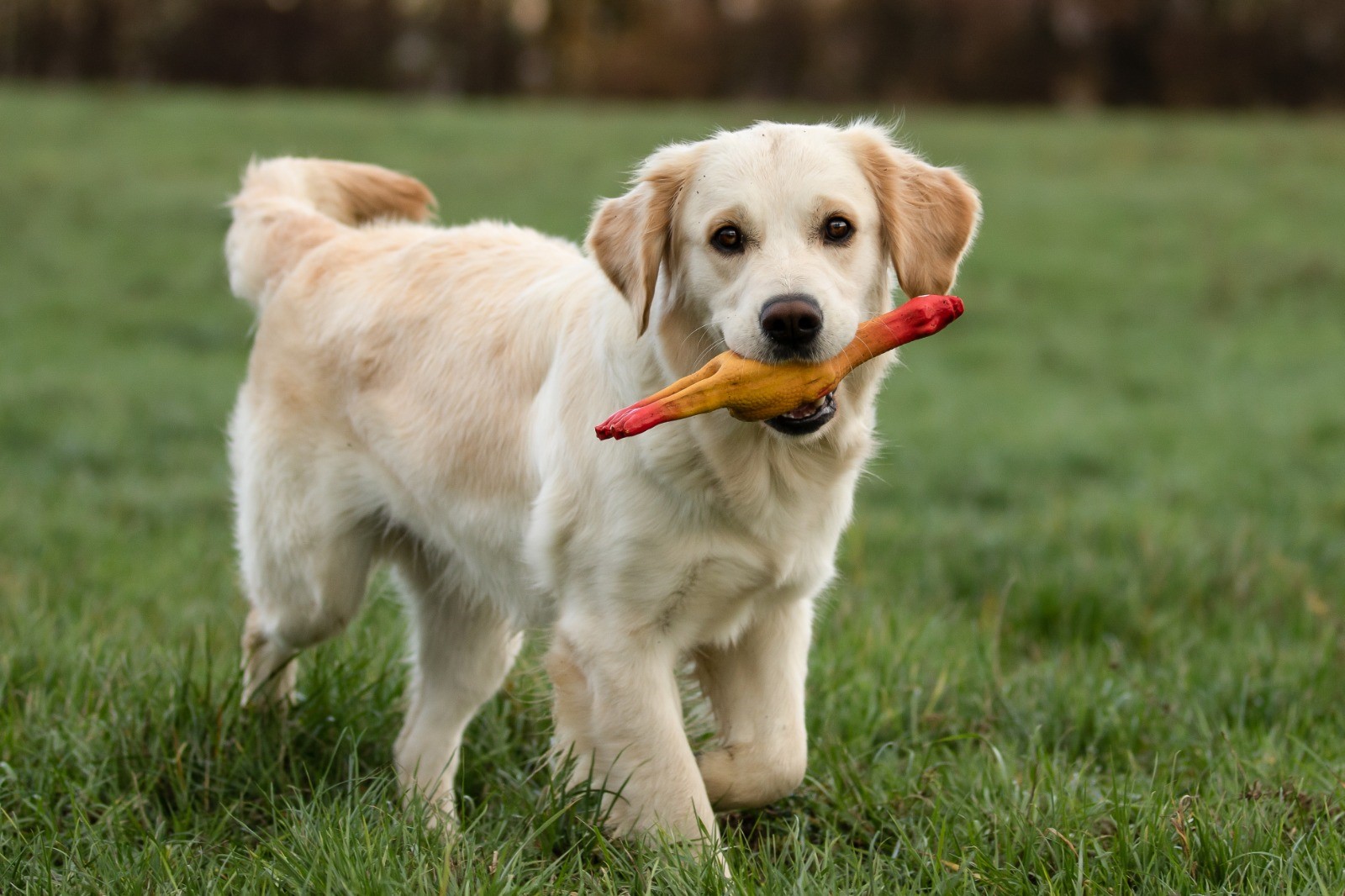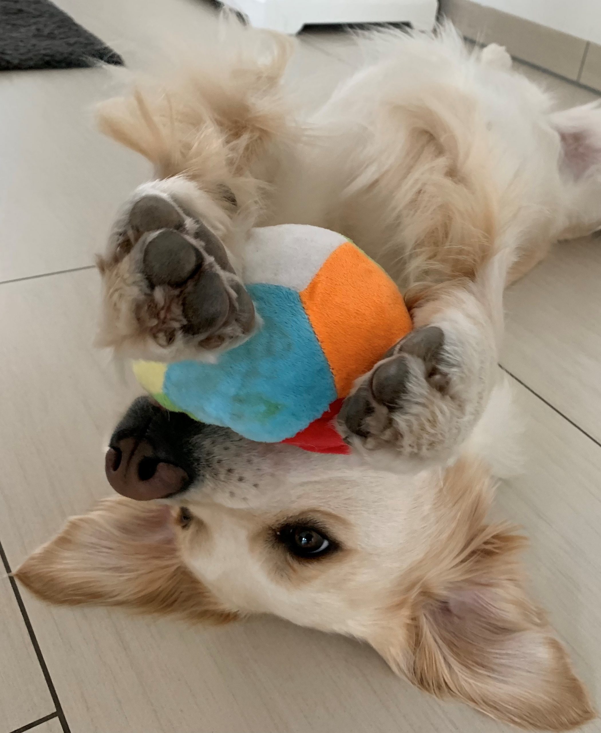 | Wesenstest | Temperament, Bewegungs- und Spieltrieb: Die 18 Monate alte Golden Hündin absolviert den Wesenstest ausgeprägt temperamentvoll und bewegungsfreudig und nutzt das gesamte Gelände beim Spaziergang für sich. Mit großer Begeisterung spielt sie mit allen Menschen und auch mit einigen Gegenständen. Ausdauer, Unerschrockenheit, Härte, Aufmerksamkeit: Sie zeigt sich durchgehend ausgeprägt unerschrocken und ausdauernd und ist dabei stets aufmerksam. Beute- und Bringtrieb, Spür- und Stöbertrieb: Beuteverhalten ist in hohem Maße vorhanden: teils trägt sie und trägt freudig zu, teils spielt sie und trägt für sich. Unterordnung und Bindung: Die Hündin hat eine vertrauensvolle Bindung zu ihren Menschen und ordnet sich problemlos unter. Sicherheit gegenüber Menschen, Kreisprobe, Rückenlage: Menschen gegenüber ist sie sehr interessiert und nimmt gerne und freundlich Kontakt auf. Die einengenden Situationen absolviert sie ganz selbstverständlich. Sicherheit gegenüber optischen und akustischen Reizen: Auf dem Parcours ist sie an allen optischen und akustischen Reizen interessiert. Sie erkundet die Reize selbständig und sicher und braucht nur bei der Kuh eine kleine Unterstützung durch ihren Menschen. Schussfestigkeit: Die Hündin ist schussfest. Bemerkungen: Eine aktive Hündin mit viel Freude an Bewegung und viel Bezug zu Menschen. Richter: Ott |