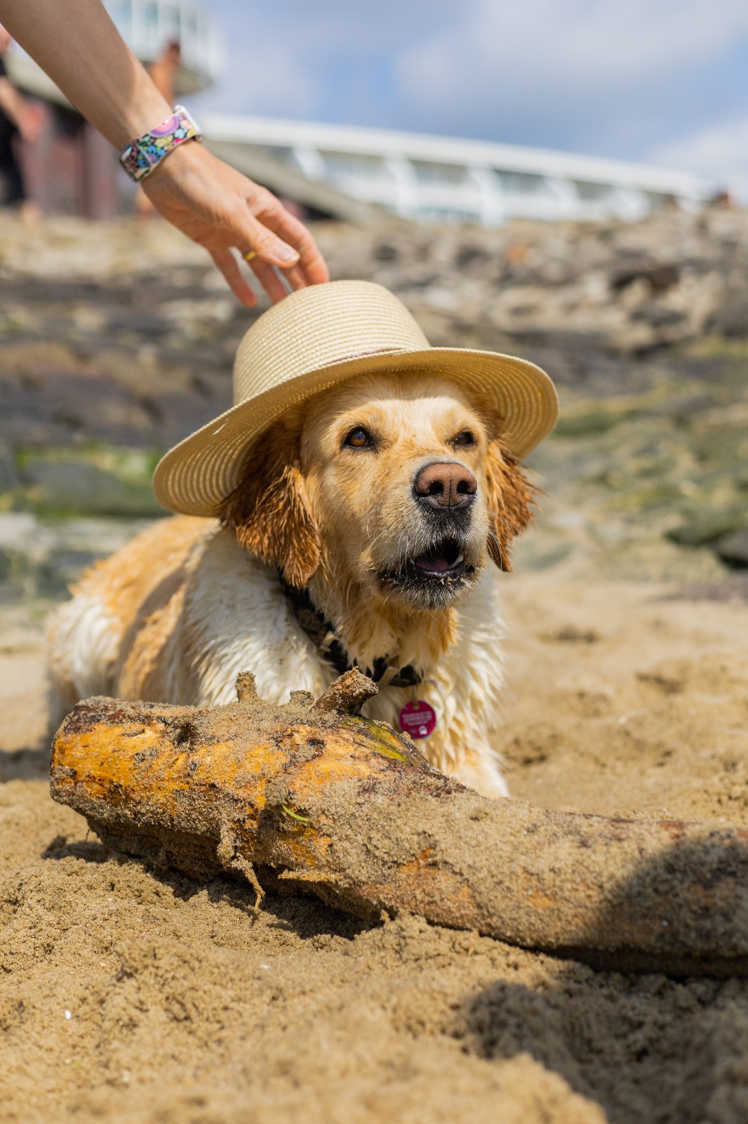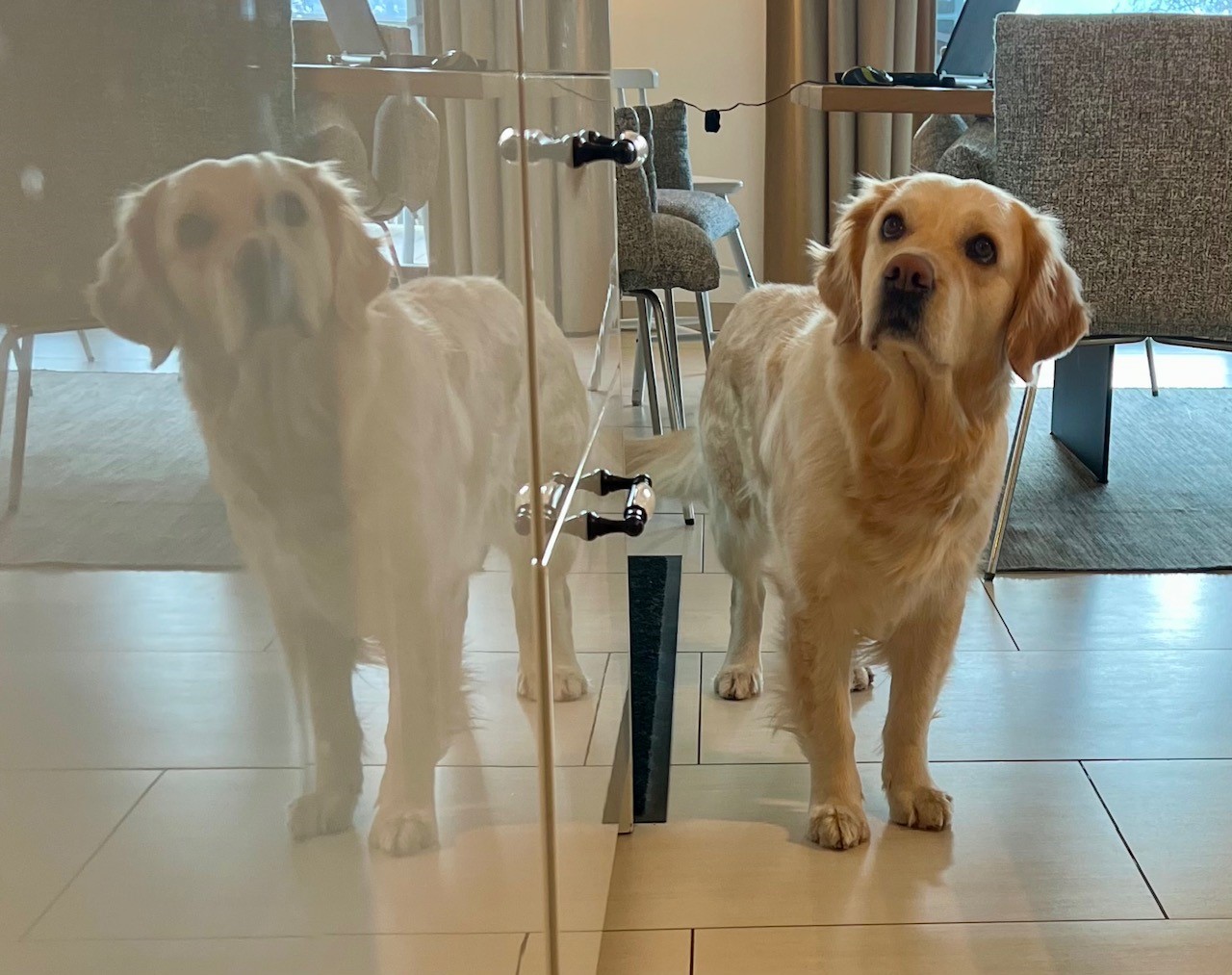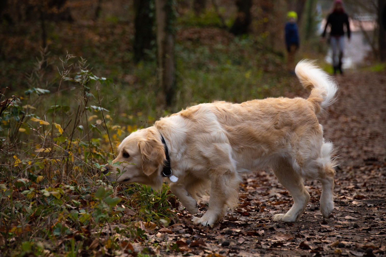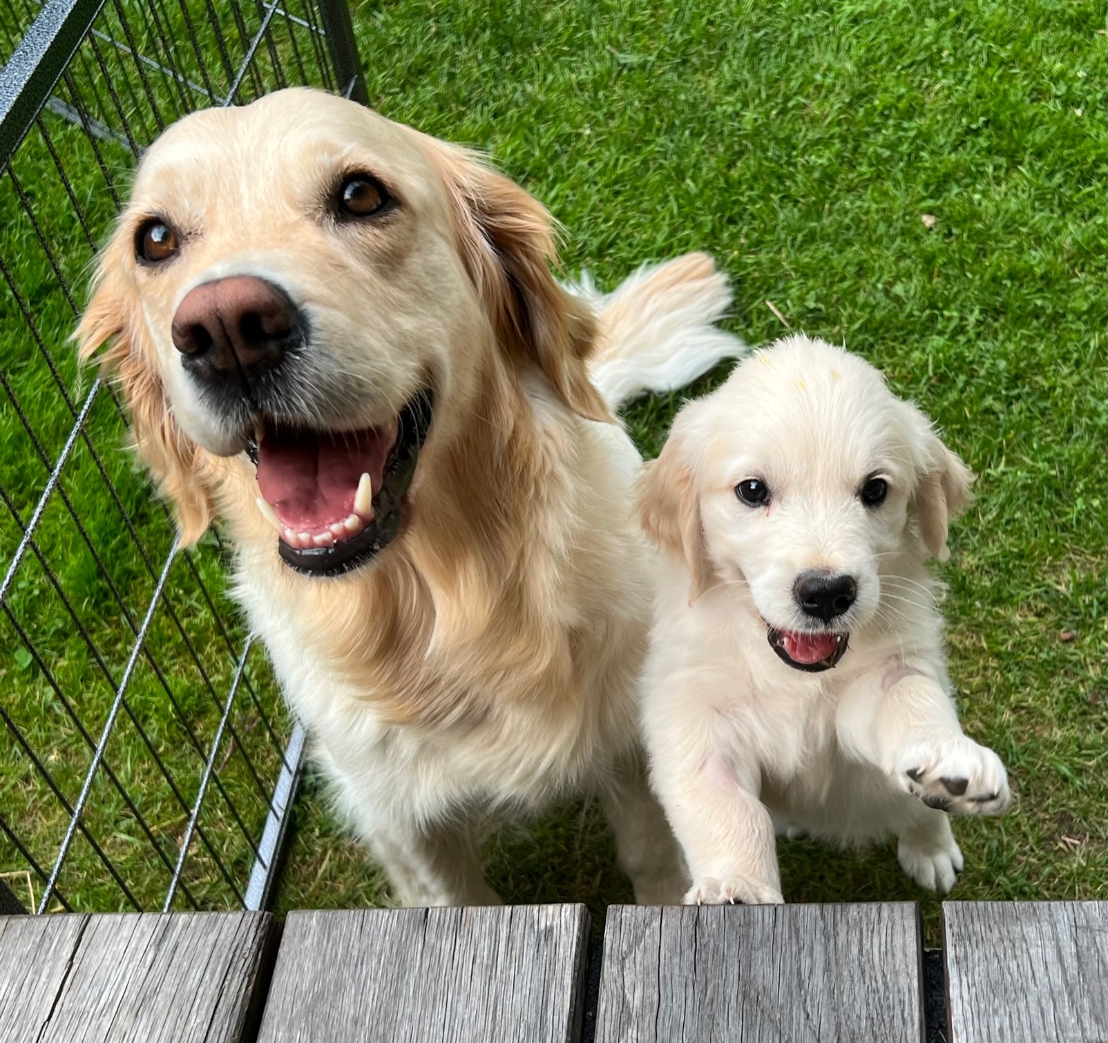 | Wesenstest | Temperament, Bewegungs- und Spieltrieb: Die 18 Monate alte Golden Hündin absolviert den Wesenstest ausgeprägt temperamentvoll und bewegungsfreudig und nutzt das gesamte Gelände beim Spaziergang für sich. Mit großer Begeisterung spielt sie mit allen Menschen und auch mit einigen Gegenständen. Ausdauer, Unerschrockenheit, Härte, Aufmerksamkeit: Sie zeigt sich durchgehend ausgeprägt unerschrocken und ausdauernd und ist dabei stets aufmerksam. Beute- und Bringtrieb, Spür- und Stöbertrieb: Beuteverhalten ist in hohem Maße vorhanden: teils trägt sie und trägt freudig zu, teils spielt sie und trägt für sich. Unterordnung und Bindung: Die Hündin hat eine vertrauensvolle Bindung zu ihren Menschen und ordnet sich problemlos unter. Sicherheit gegenüber Menschen, Kreisprobe, Rückenlage: Menschen gegenüber ist sie sehr interessiert und nimmt gerne und freundlich Kontakt auf. Die einengenden Situationen absolviert sie ganz selbstverständlich. Sicherheit gegenüber optischen und akustischen Reizen: Auf dem Parcours ist sie an allen optischen und akustischen Reizen interessiert. Sie erkundet die Reize selbständig und sicher und braucht nur bei der Kuh eine kleine Unterstützung durch ihren Menschen. Schussfestigkeit: Die Hündin ist schussfest. Bemerkungen: Eine aktive Hündin mit viel Freude an Bewegung und viel Bezug zu Menschen. Richter: Ott |